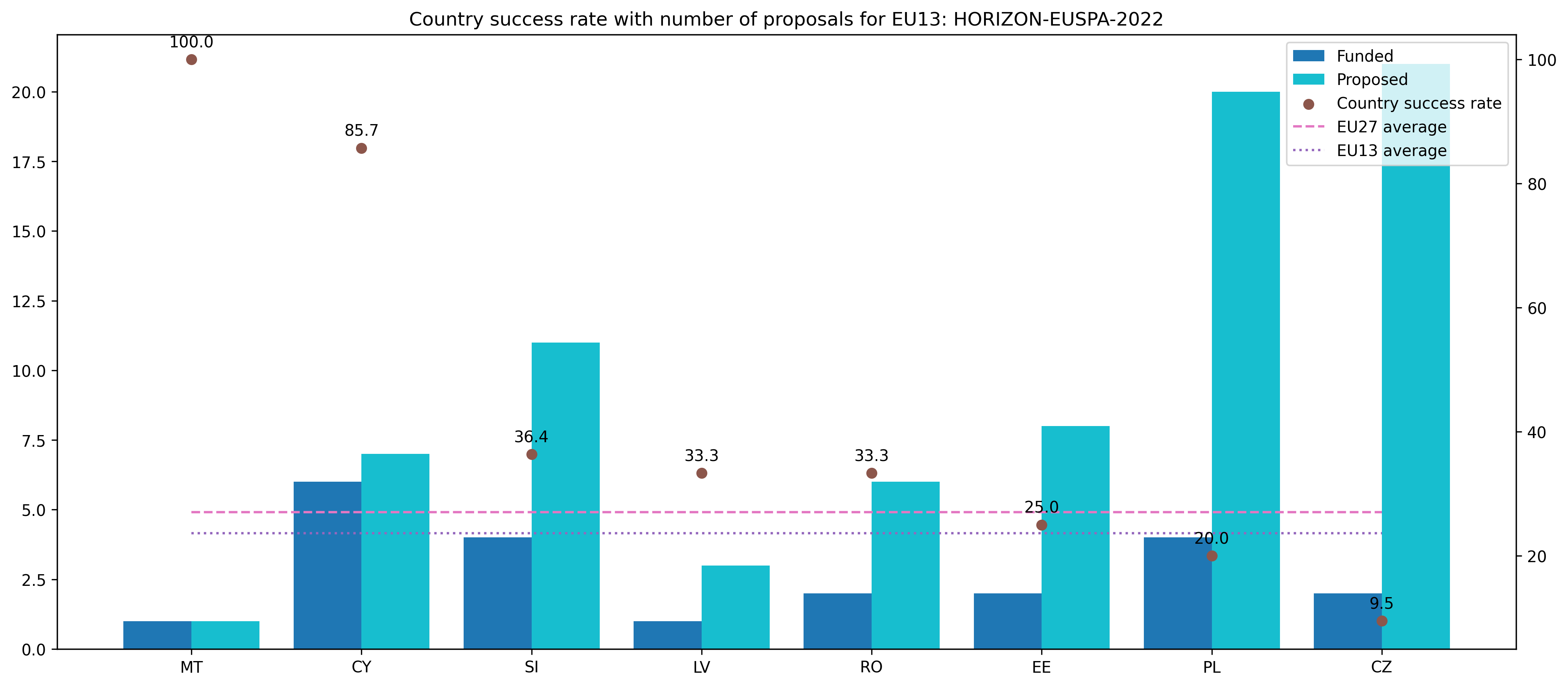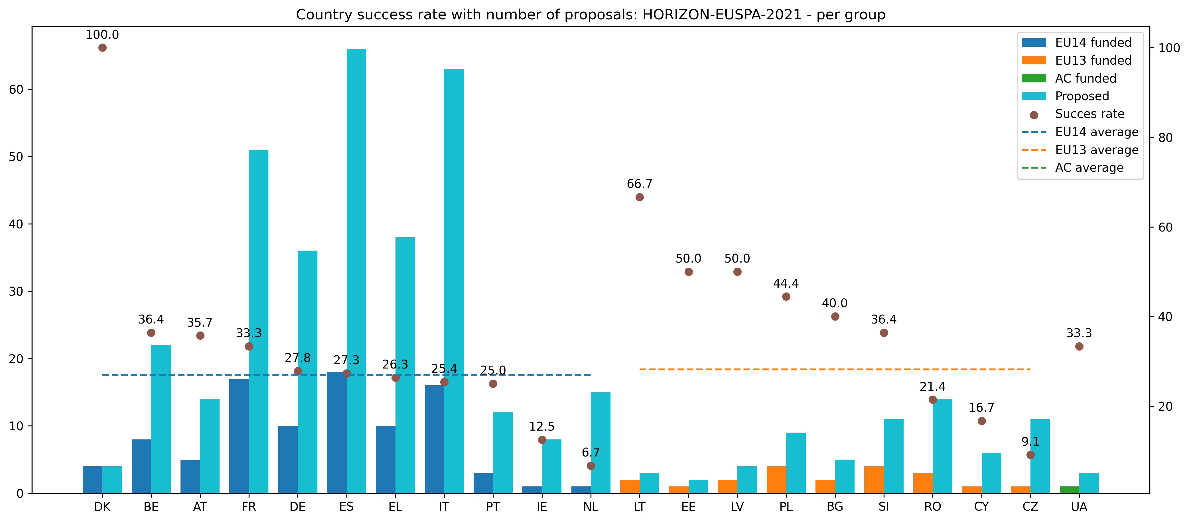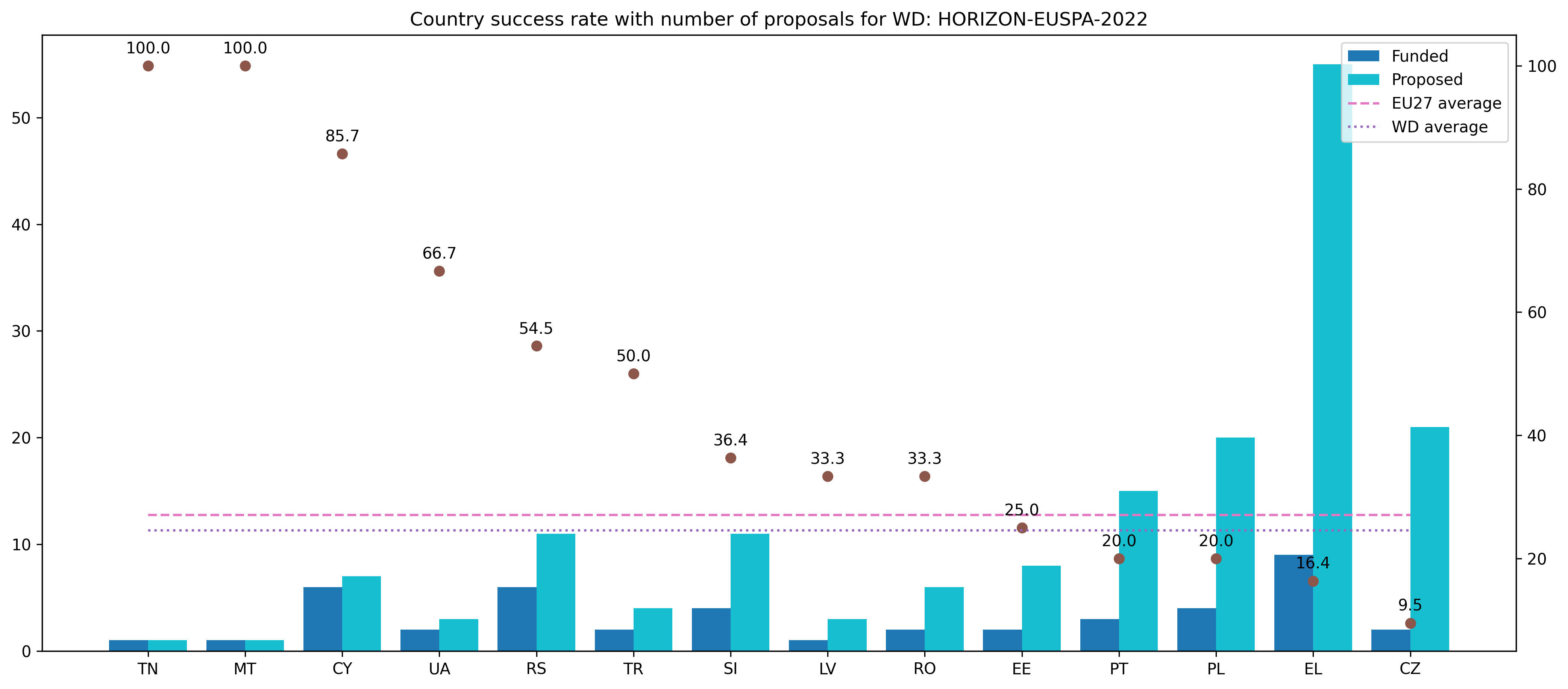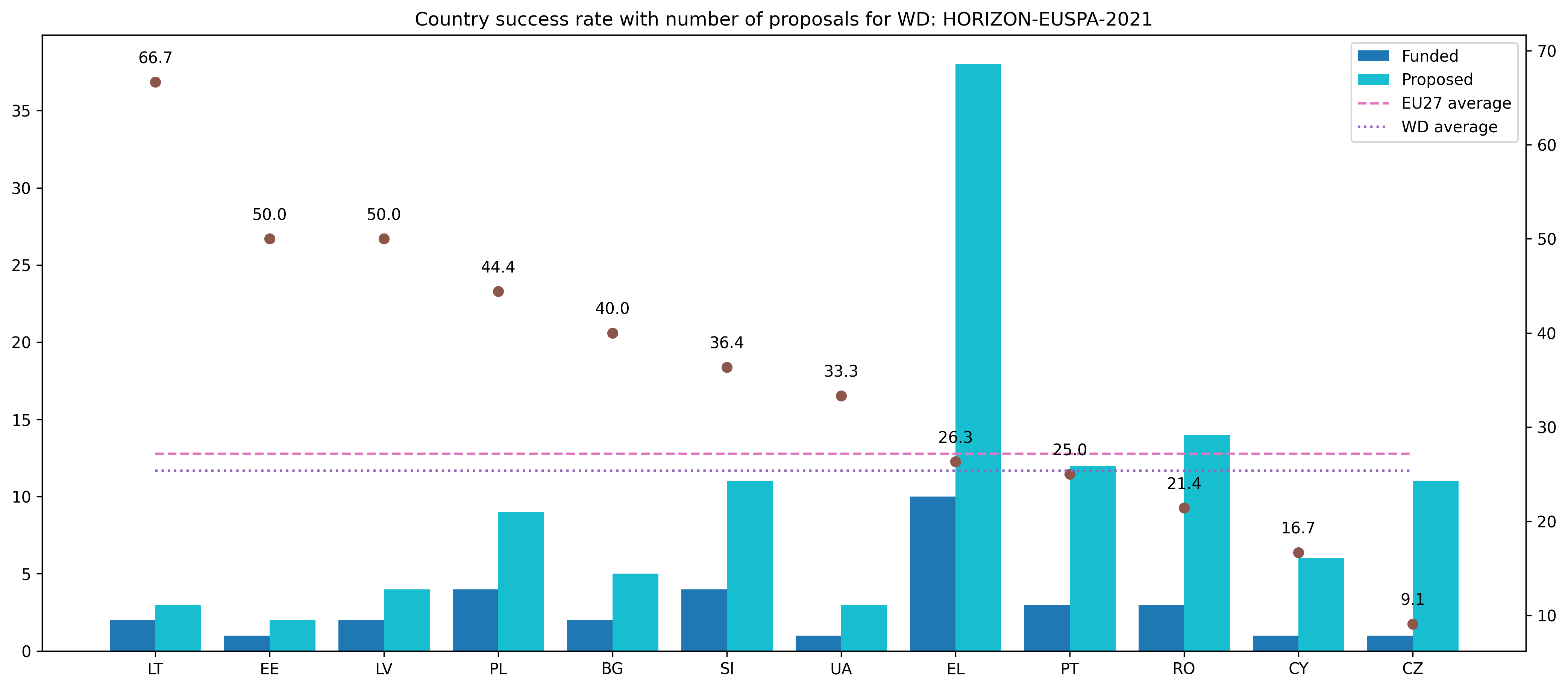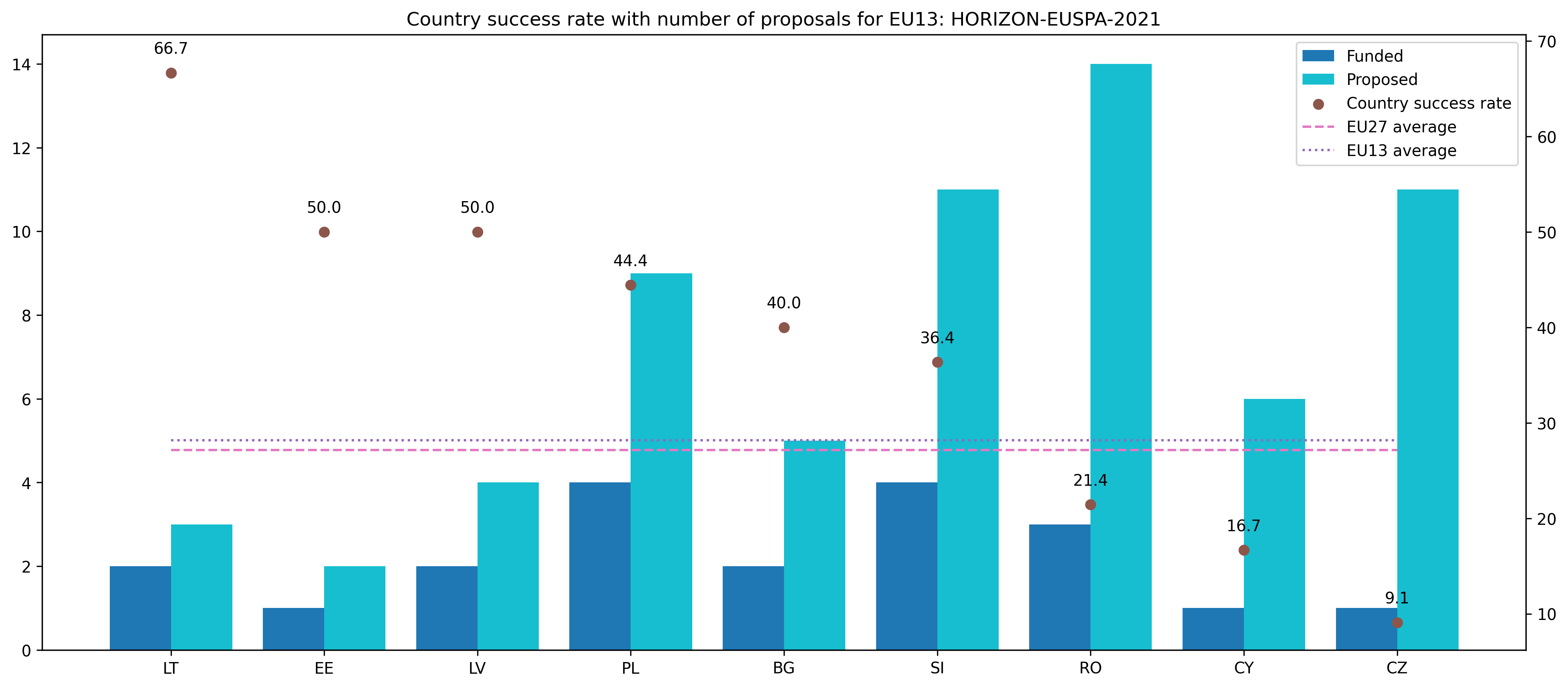 Analysis of participation success under Horizon Europe in Space calls is presented here. This data analysis could be useful for broadening participation in Space calls for all participants. (Patch v1.2 - updated 28.02.2025.)