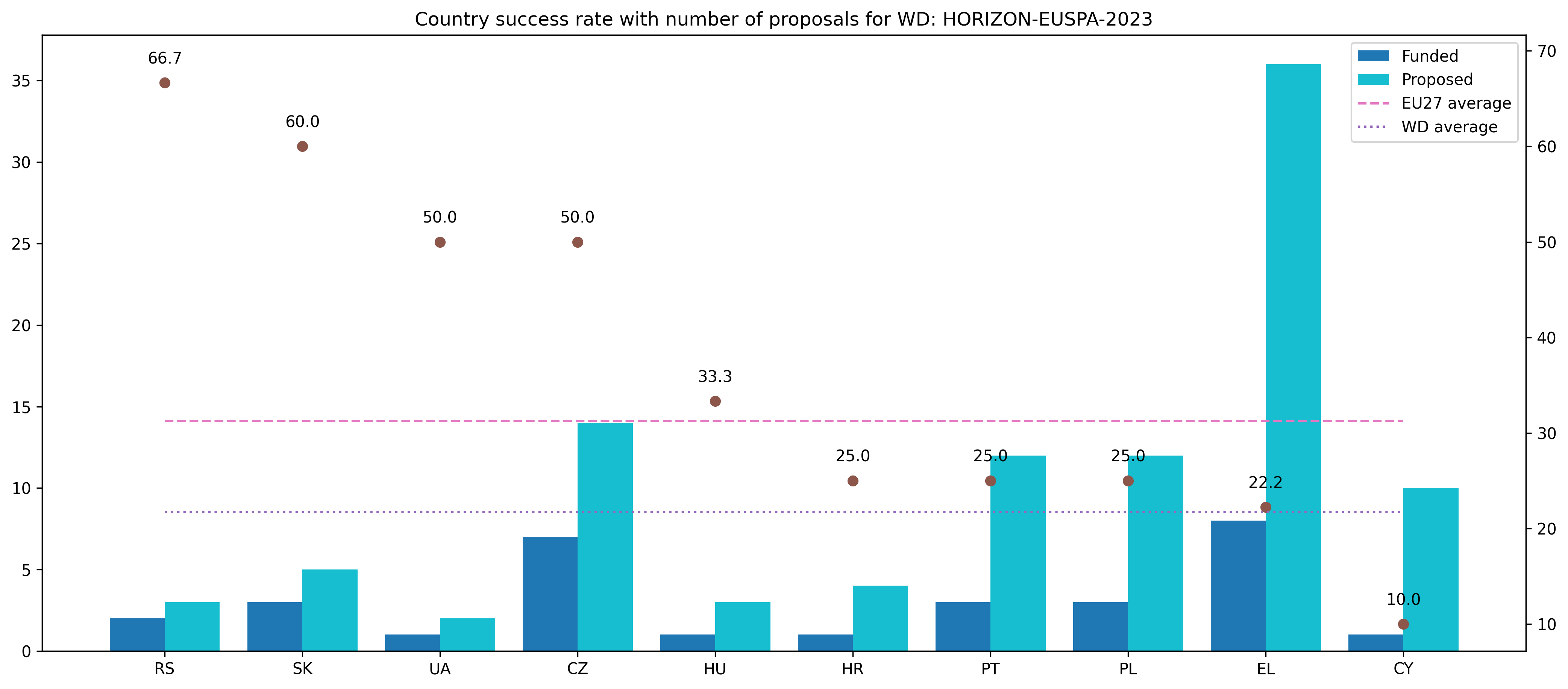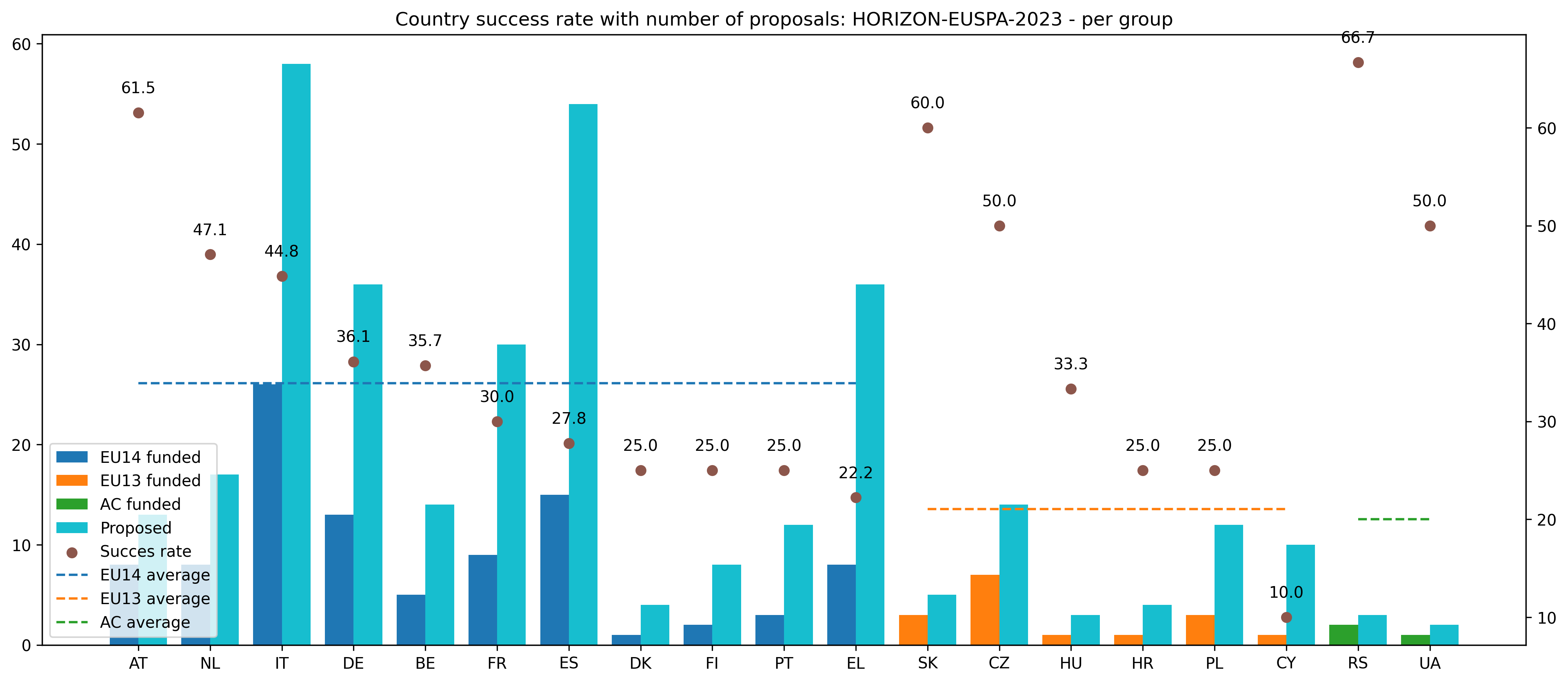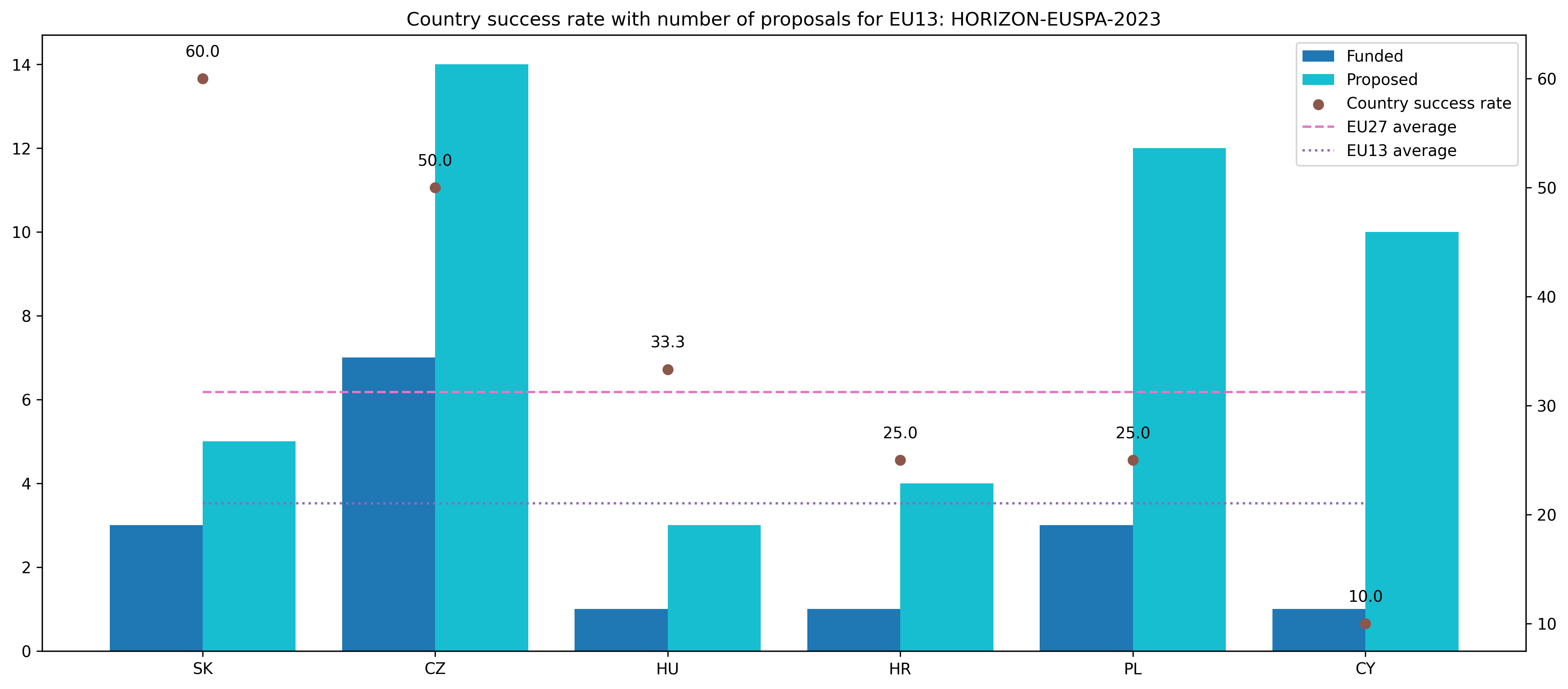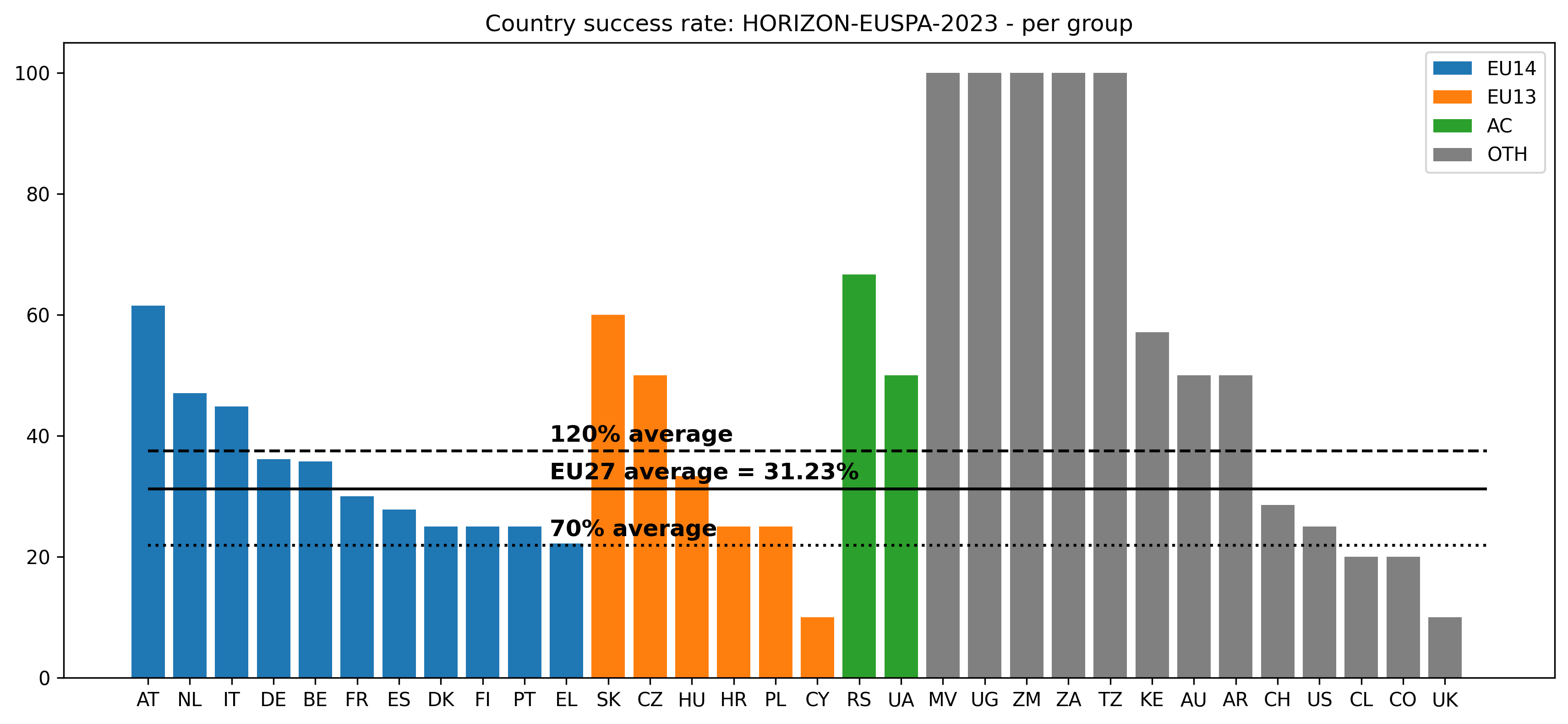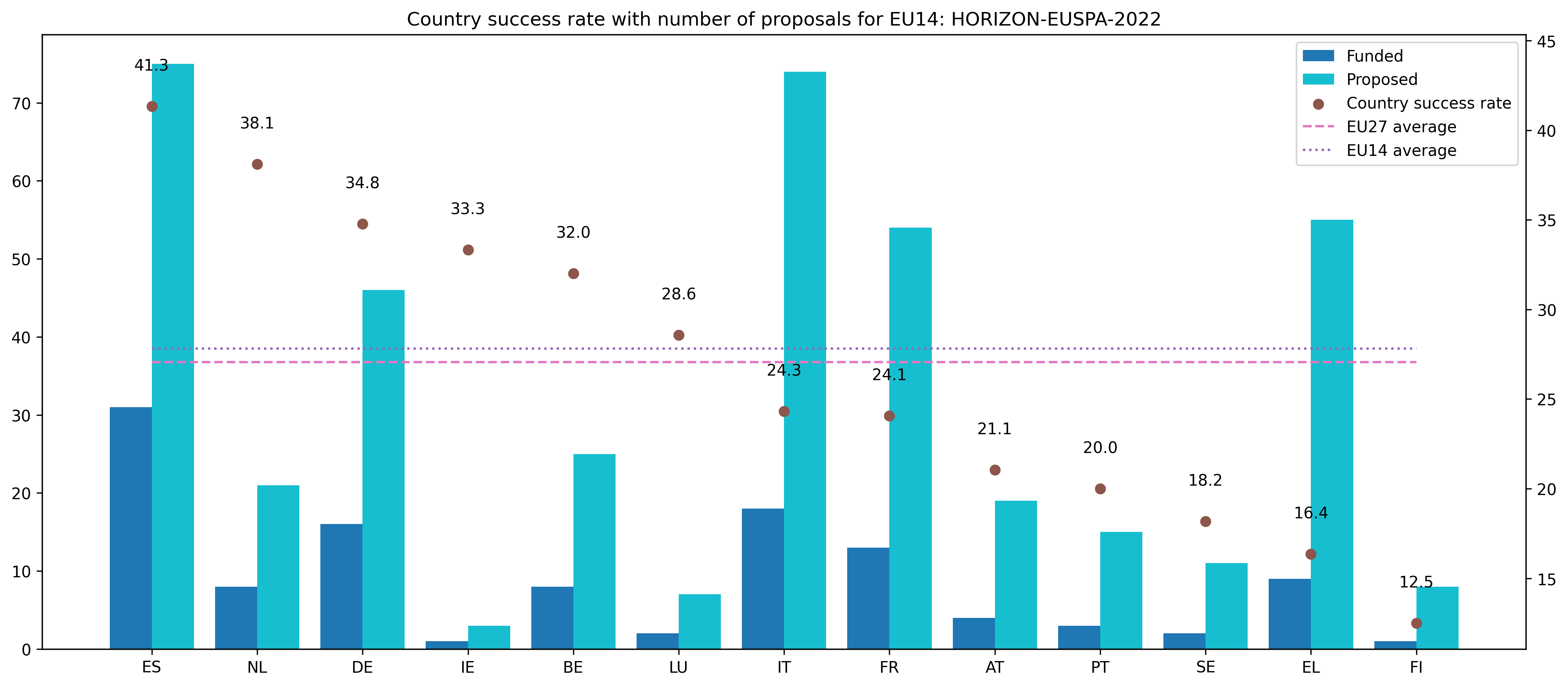 Analysis of participation success under Horizon Europe in Space calls is presented here. This data analysis could be useful for broadening participation in Space calls for all participants. (Patch v1.2 - updated 28.02.2025.)