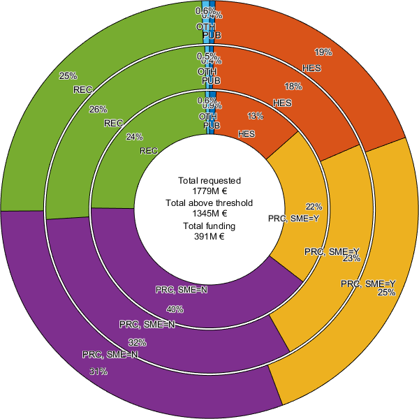 | EU contribution, million EUR | # Projects | # Participations | # Coordinations | ||||||||||