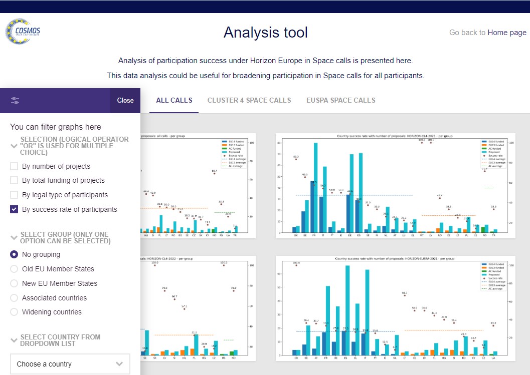 We have worked out a tool that gives easy access to results (proposed / granted project participation, EU return, number of successful project & number of coordinators) by simply selecting filters. Results are split between different Horizon Europe calls.